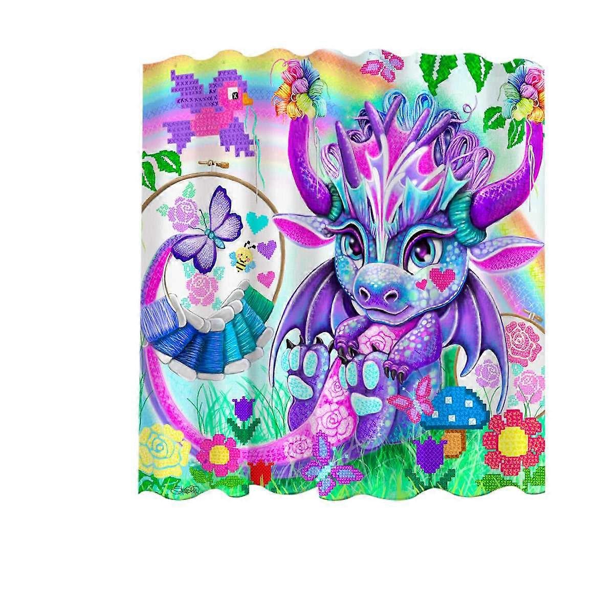 Colorful Kids Cross-Stitch-Like Lil Dragon Shower Curtain