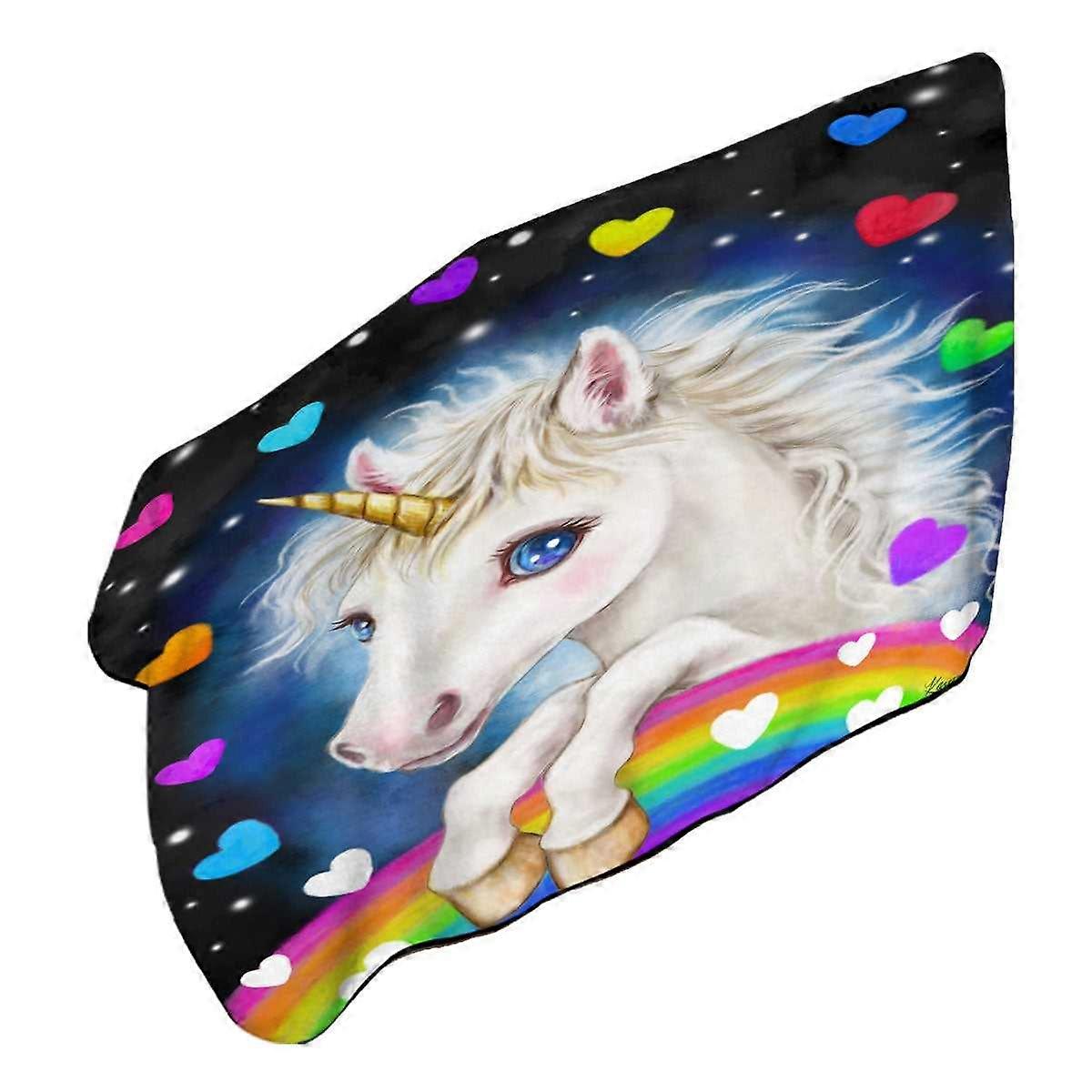 Colorful Lovely Unicorn Rainbow and Hearts Microfiber Beach Towel