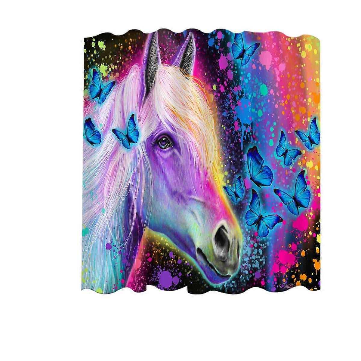Colorful Neon Rainbow Horse and Butterflies Shower Curtain