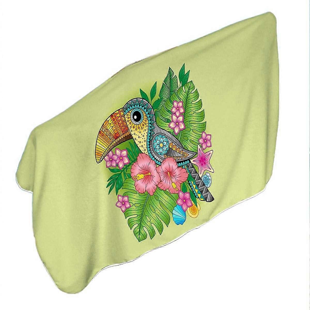Colorful Tropical Flowers and Toucan Microfiber Beach Towel