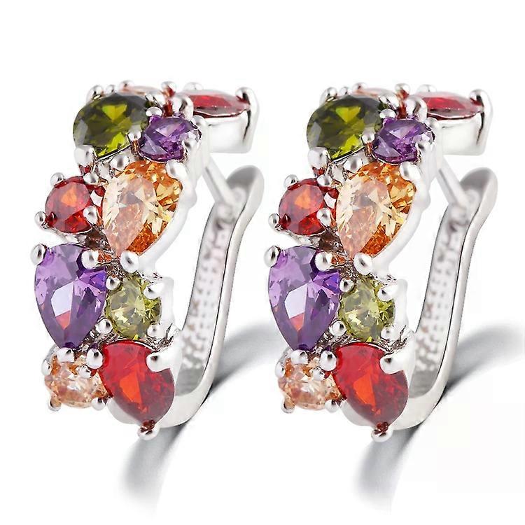 Colorful Zircon Stud Earrings for Women-Silver Jewelry by Silver