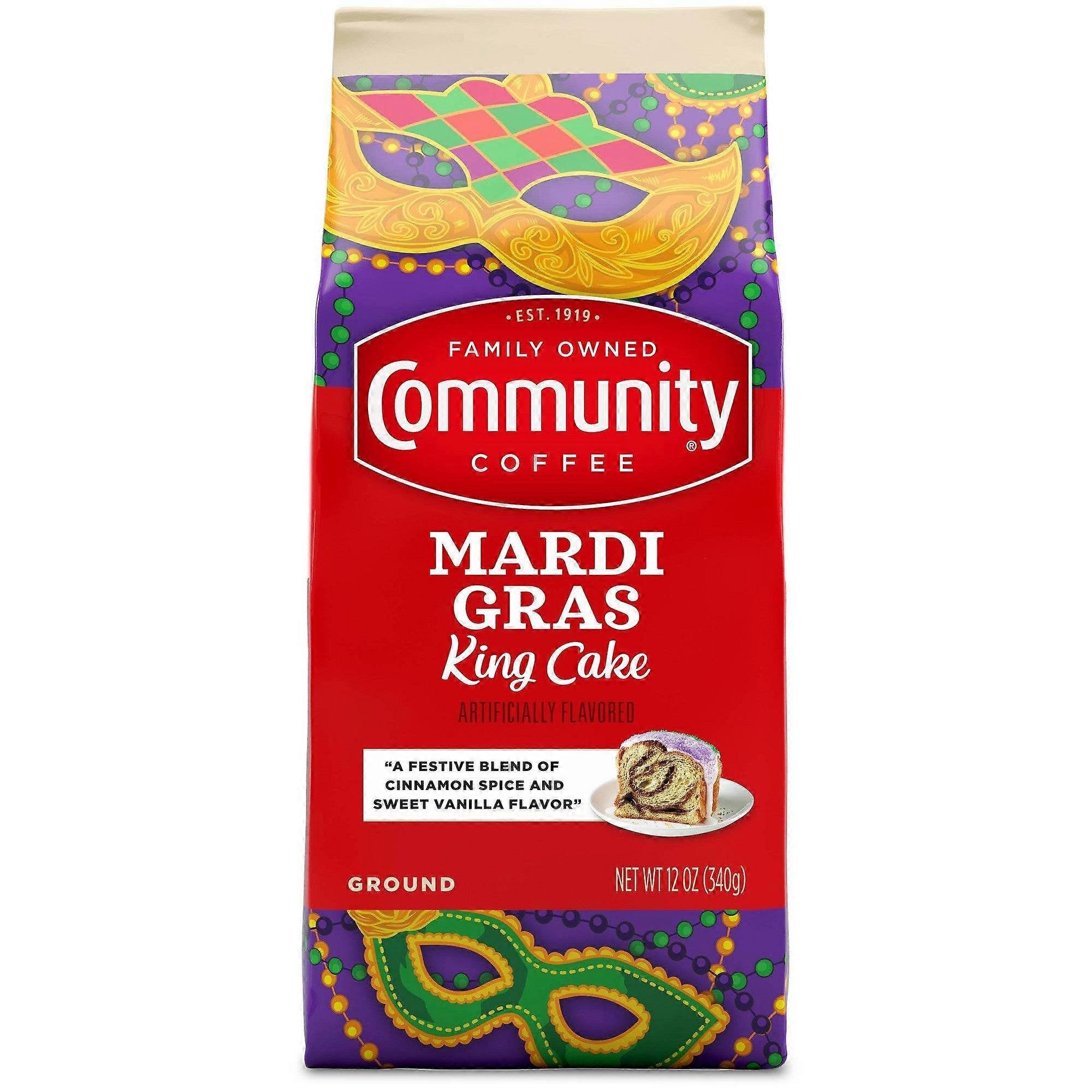 Community Coffee Mardi Gras King Cake Flavored Medium Roast Coffee, 12 Oz