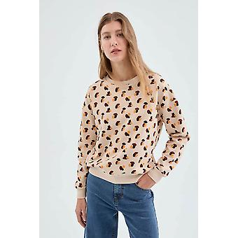 Compania Fantastica Beige Leopard print fleece sweatshirt