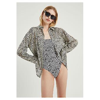 Compania Fantastica Black beige Flower print oversized long-sleeved shirt