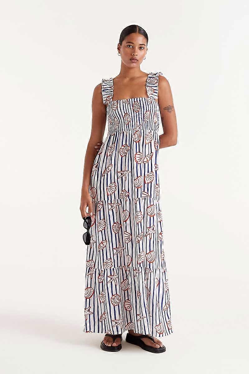 Compania Fantastica Blue and White Striped Midi Dress with Shells