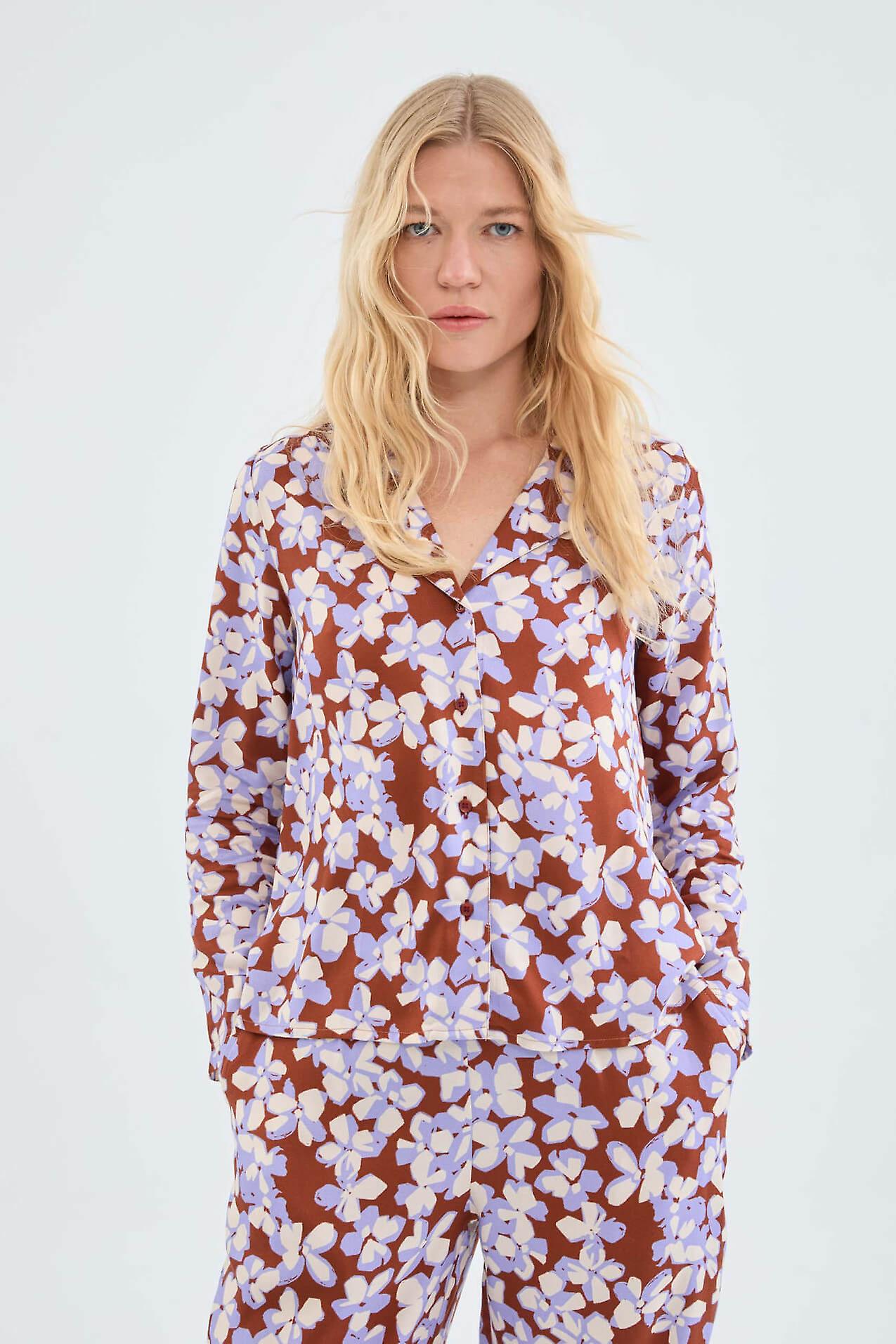 Compania Fantastica Flowy long-sleeved shirt with brown & lilac floral print
