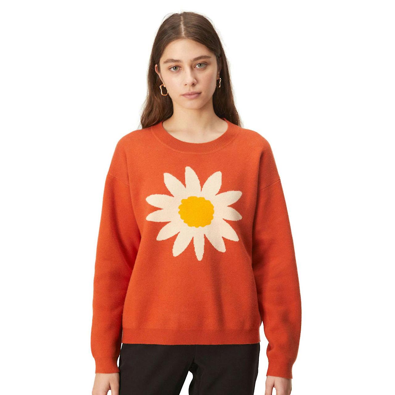 Compania Fantastica Jacquard orange knit sweater with daisy floral motif
