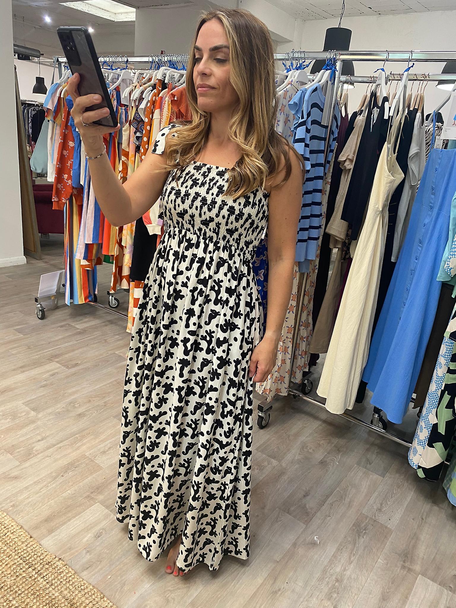 Compania Fantastica Long Coral Print Black & White Maxi Summer Dress
