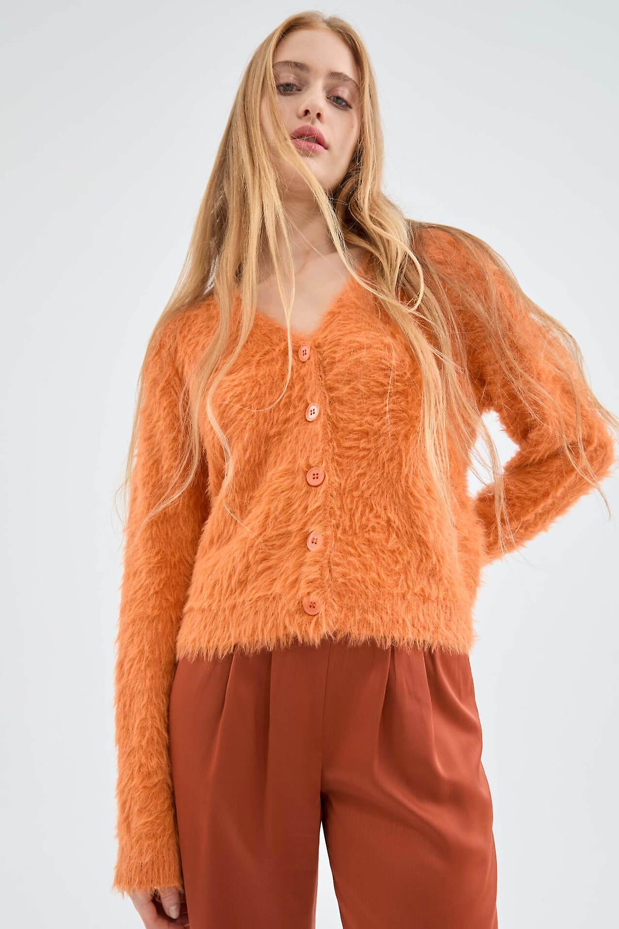 Compania Fantastica Orange Textured Knit Cardigan