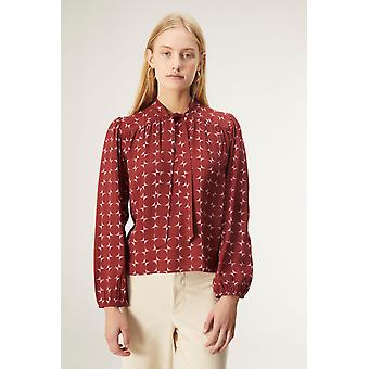 Compania Fantastica Retro Geometric Print Tie Neck Top