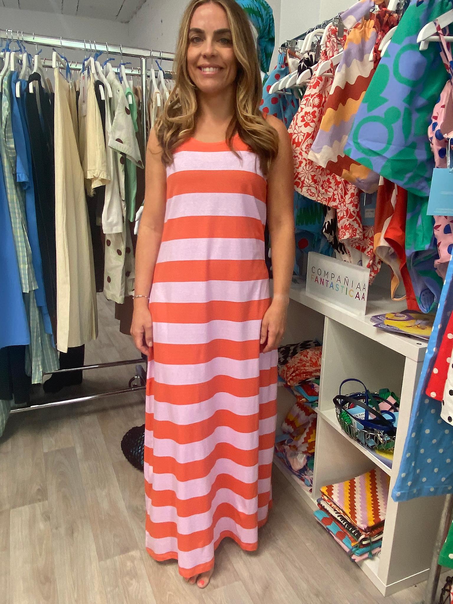 Compania Fantastica Striped Lilac Jersey Sleeveless Summer Dress