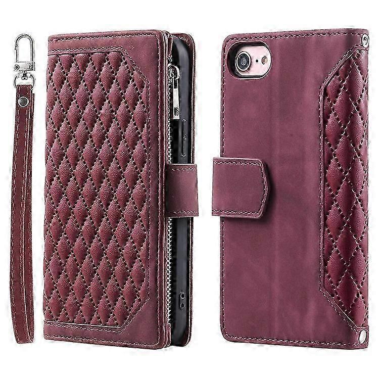 Compatible For iPhone 16e Case Rhombus Imprinted Zipper Wallet Leather Cover with Strap