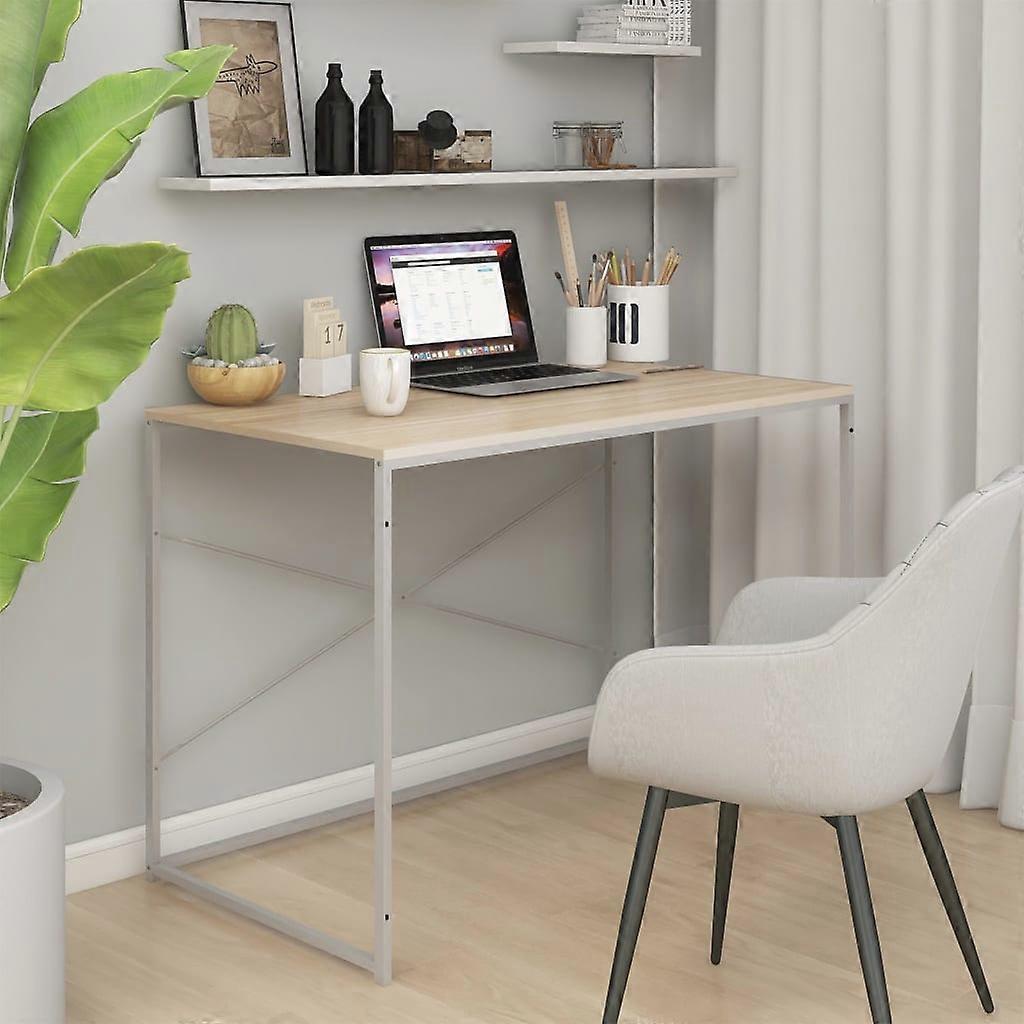 Computertisch Weiß und Eiche-Optik 110x60x70 cm Holzwerkstoff
