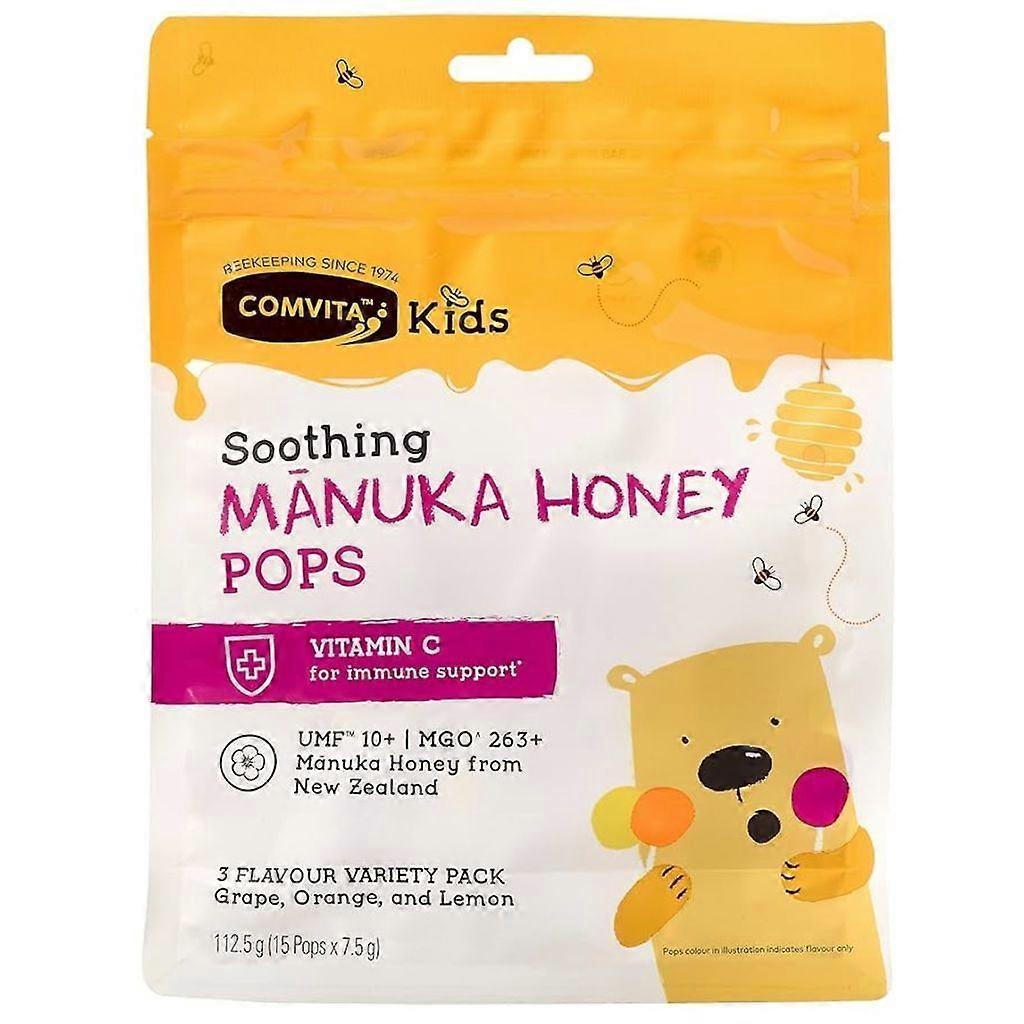 Comvita Kids Manuka Honey Pops soothe sore throats and support immunity with UMF 10+ honey, propolis, and Vitamin C. Tasty, natural lollipops for ages 3+.