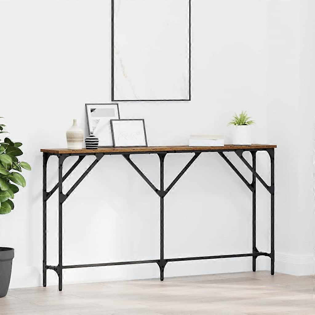 Farbe: AltholzMaterial: Schichtholz und MetallGesamtabmessungen: 140 x 23 x 75 cm (L x B x H)Gewicht: 6,6 kgLanglebigStellfüßeRahmenmaterial: EisenInnen- / Außenbereich: Nur für den InnenbereichLieferumfang:1 x KonsolentischMontage erforderlich: Ja