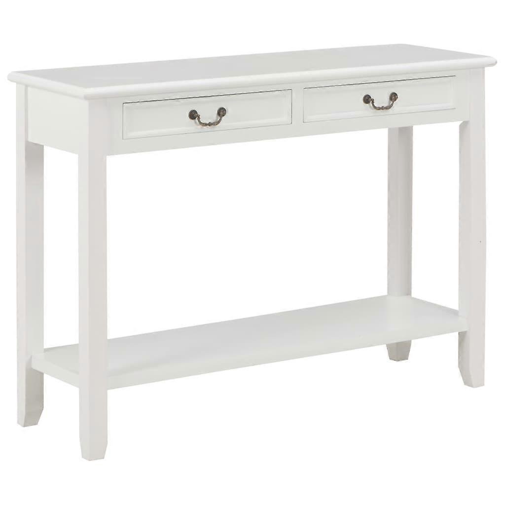 Farbe: WeißAbmessungen: 110 x 35 x 80 cm (L x B x H)Material: Kiefernholz-Bein + MDF + Paulownia-FurnierMit 2 Schubladen und einer Ablagefläche