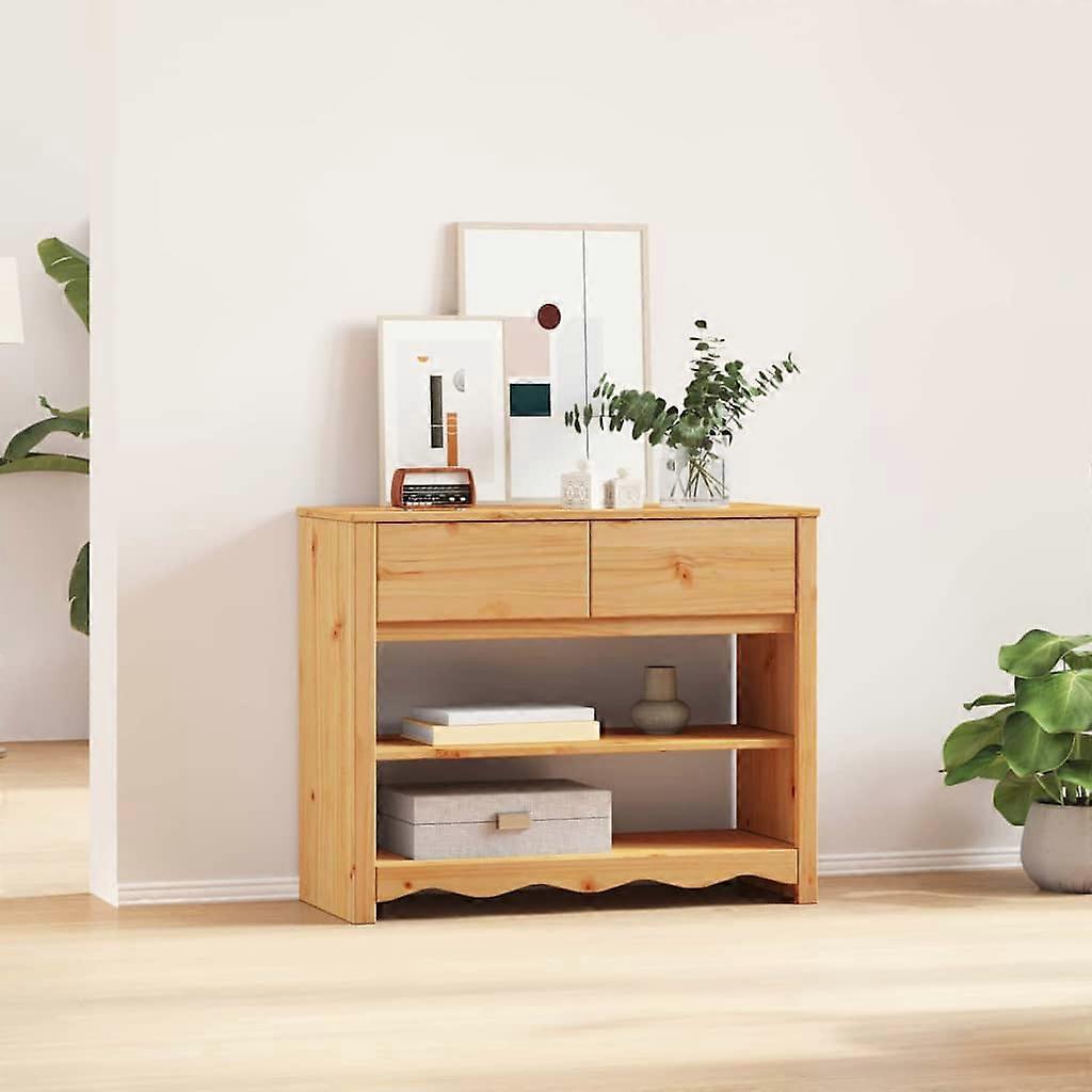 Farbe: EicheMaterial: Massives KiefernholzGesamtabmessungen: 89,5 x 37 x 73 cm (L x B x H)Gewicht: 13,3 kgLanglebigStauraummit 2 Schubladenmit 2 RegalenRahmenmaterial: Massivholz KieferNur für den InnenbereichLieferumfang:1 x KonsolentischMontage erforderlich: JaSortimentsname: Drammen