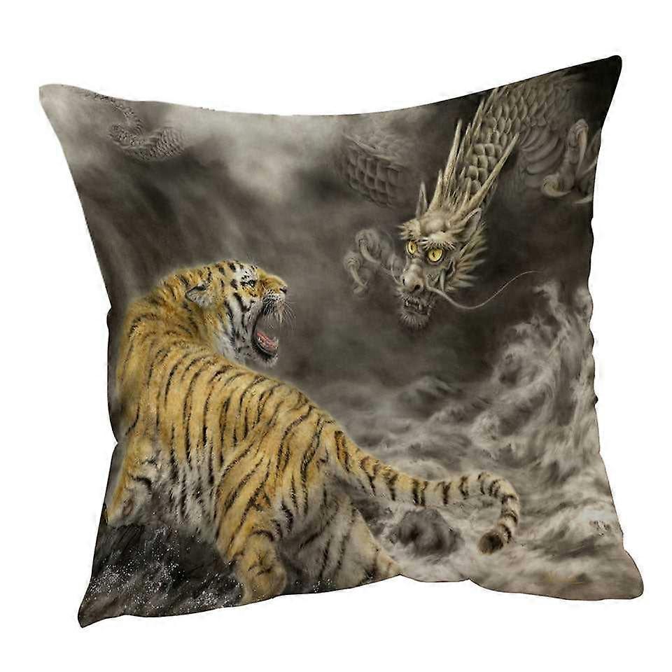 Cool Fantasy Art Dragon vs Tiger Cushion Cover