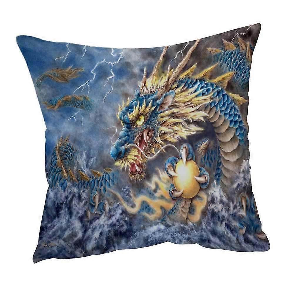 Cool Fantasy Art Ocean Storm Blue Dragon Cushion Cover