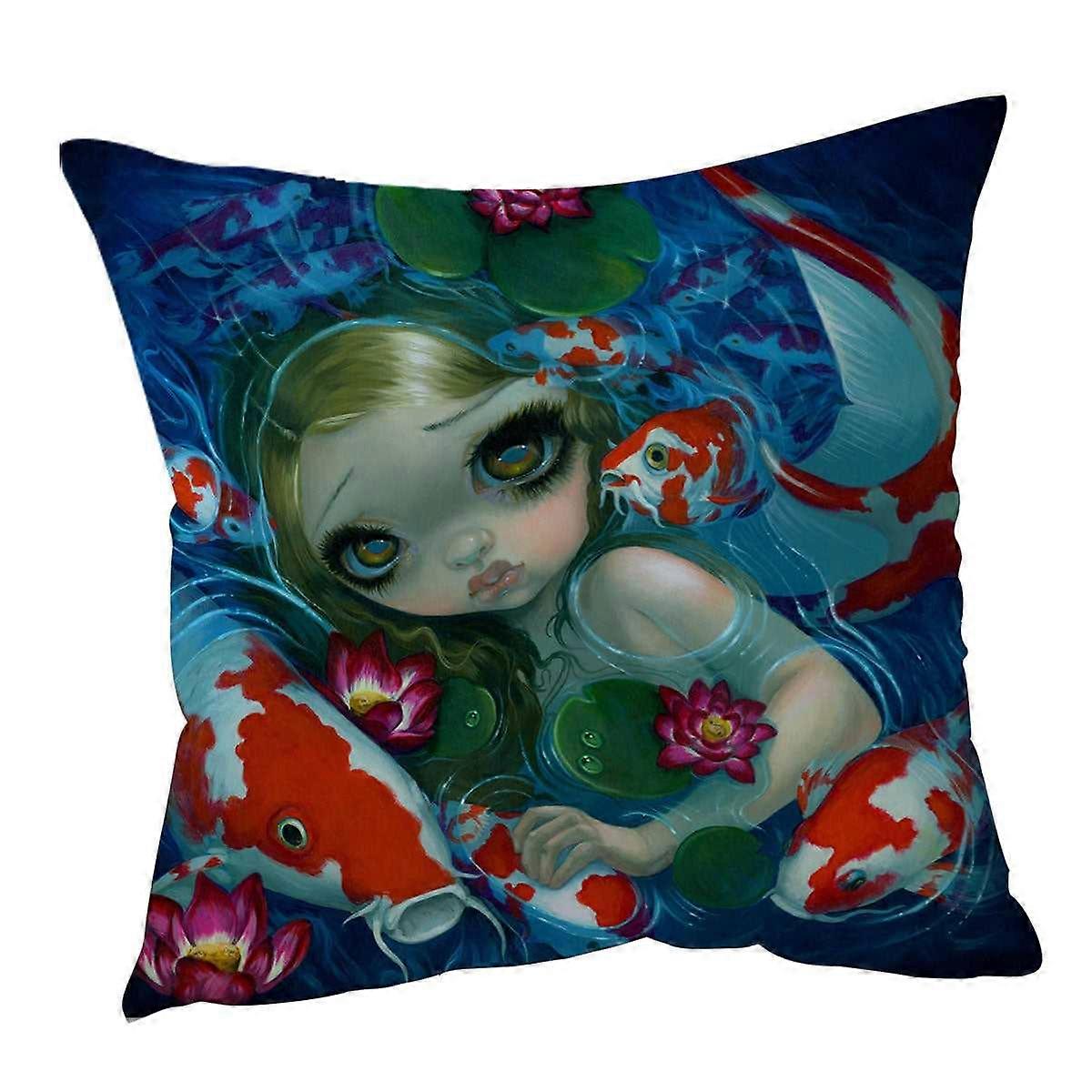 Cool Fantasy Art Swimming with Koi Mermaid Cushion Cover