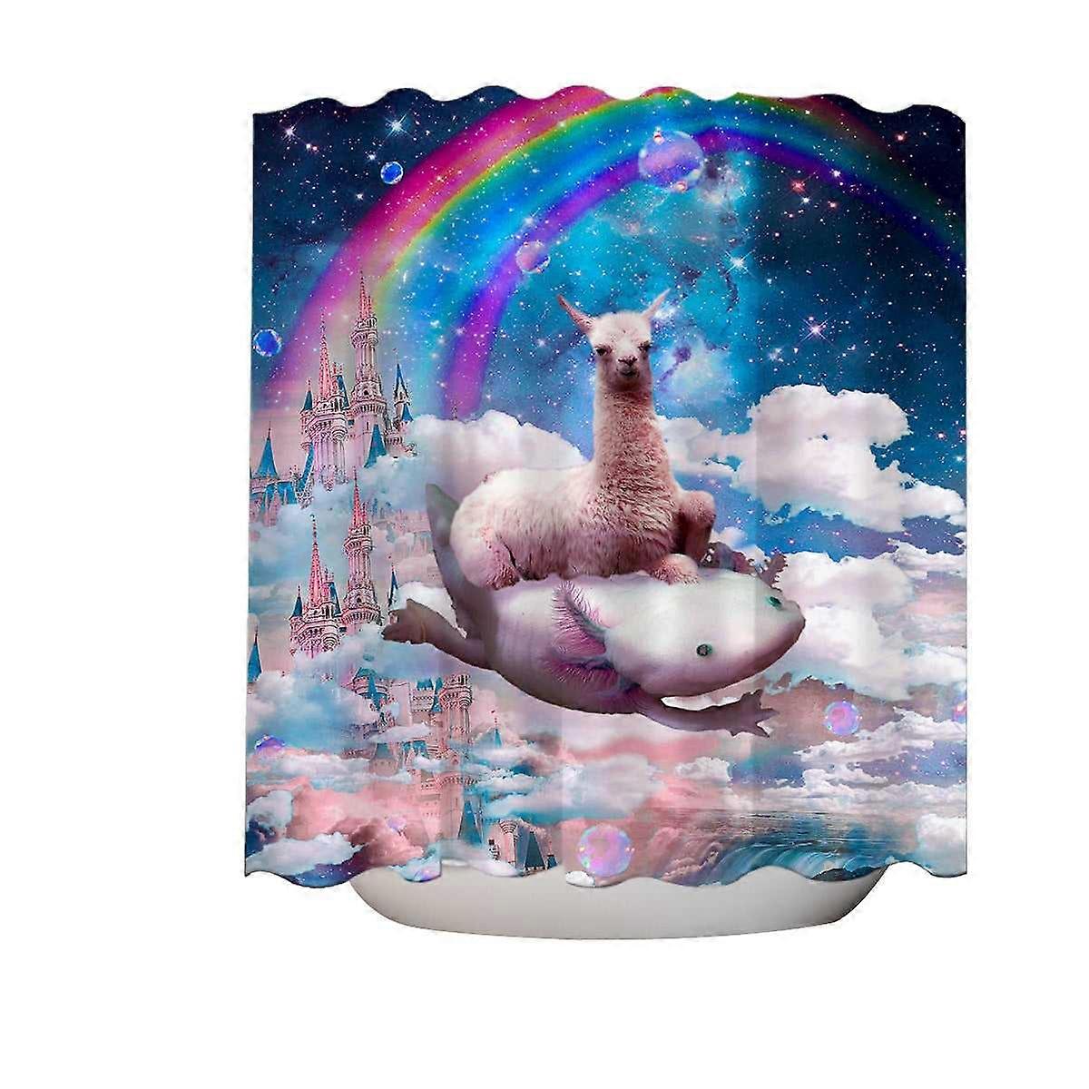 Cool Fantasy Crazy Space Llama Riding Axolotl Shower Curtain