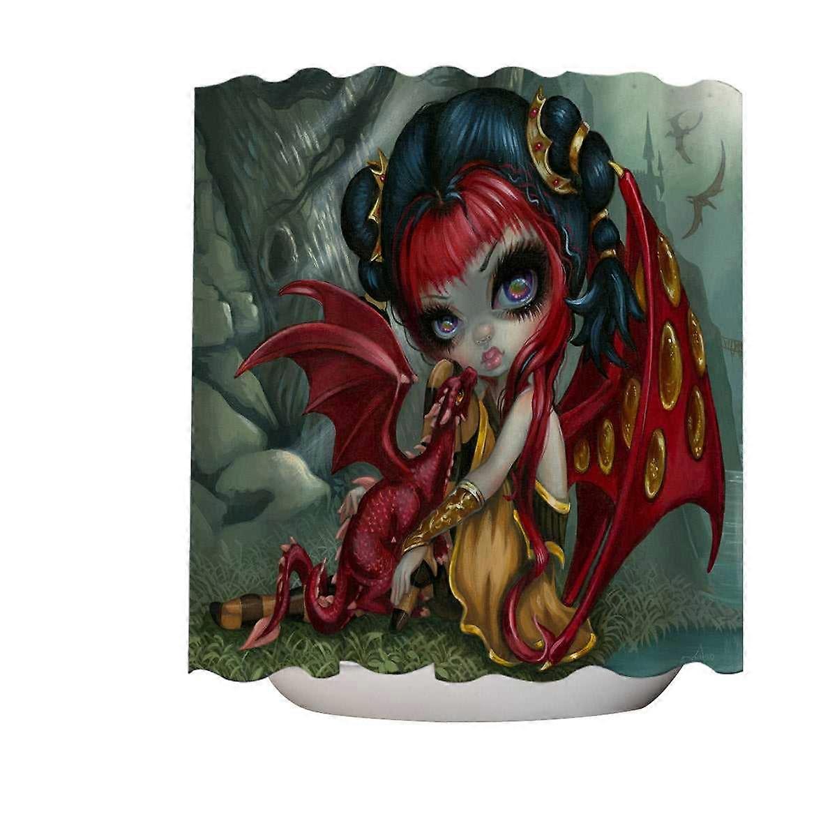 Cool Fantasy Dragon Fairy and Amber Dragonling Shower Curtain