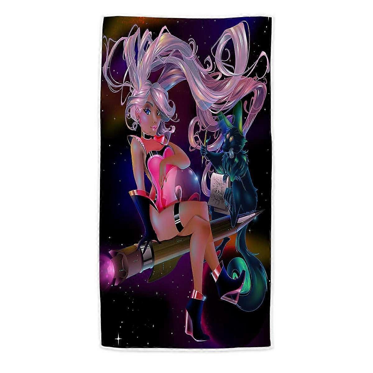 Cool Galactic Girl with Alien Cat Microfiber Beach Towel
