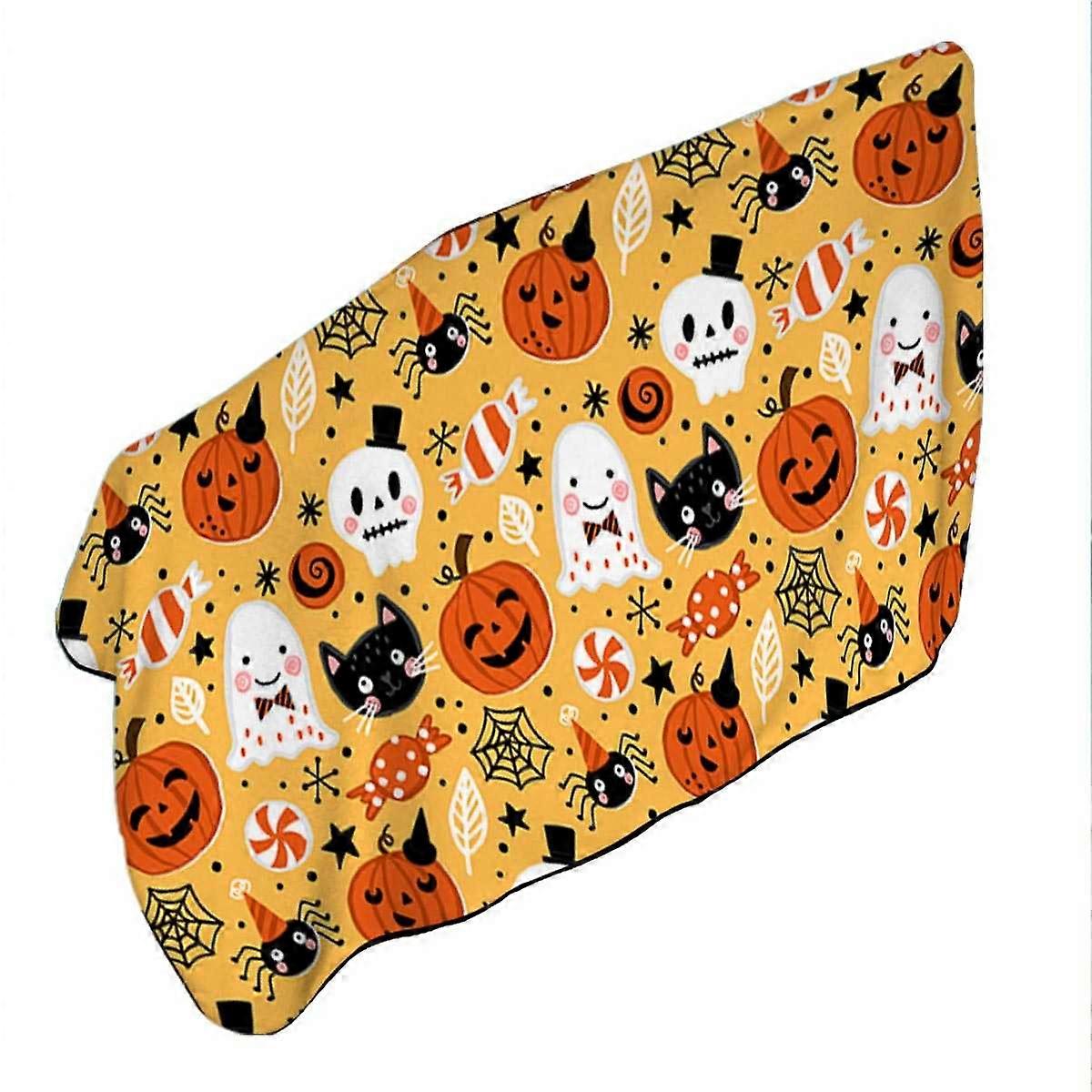 Cool Halloween Candies Ghosts and Pumpkins Microfiber Beach Towel