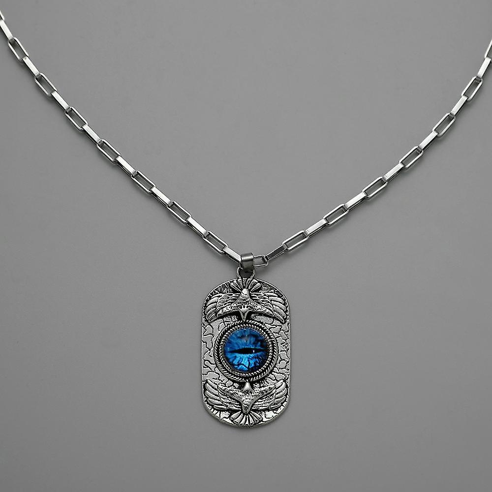 Coolt halsband silver blått öga demon rostfritt stål örn fågel