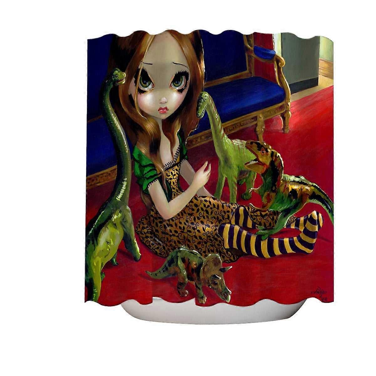 Cool Painting Cute Girl and Dinosaur Friends Shower Curtain