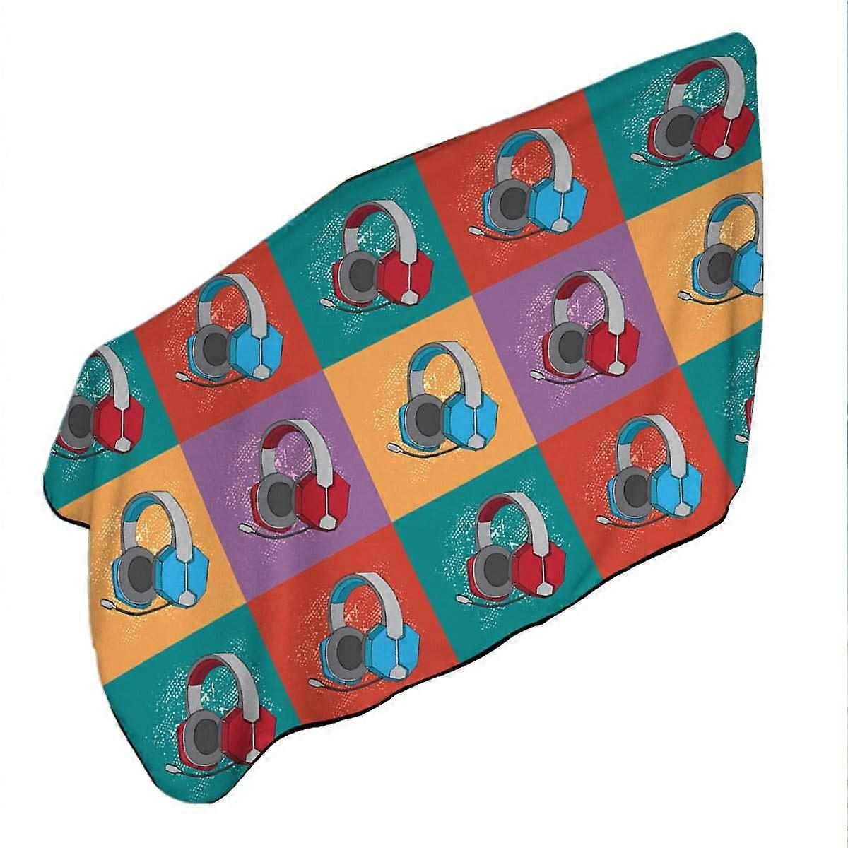 Cool Red and Blue Gamers Headphone Sets Microfiber Beach Towel