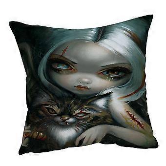 Cool Scary Art Zombie Kitty and Pretty Zombie Girl Cushion Cover