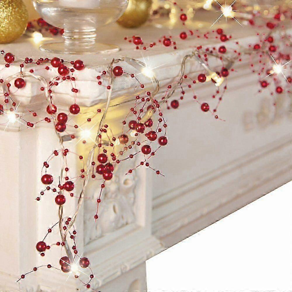 Cordless Lighted Berry Beaded Garland Christmas Decorations for Indoor Outdoor Home Mantel Fireplace Holiday Party Decor 2.5m(Red)