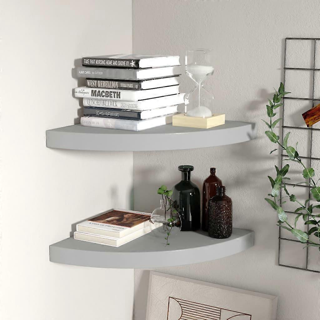 Eck-Schweberegale 2 Stk. Grau 35x35x3,8 cm MDF