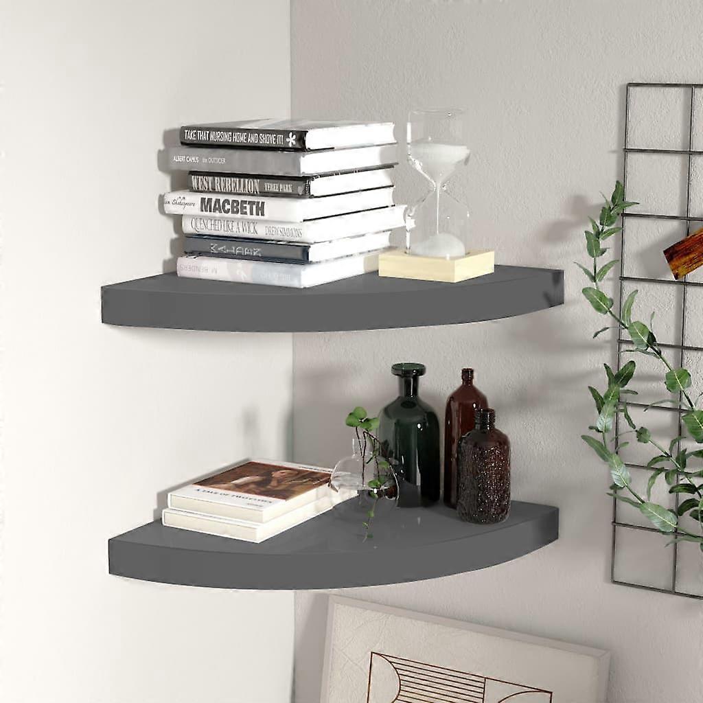 Eck-Schweberegale 2 Stk. Hochglanz-Grau 35x35x3,8 cm MDF
