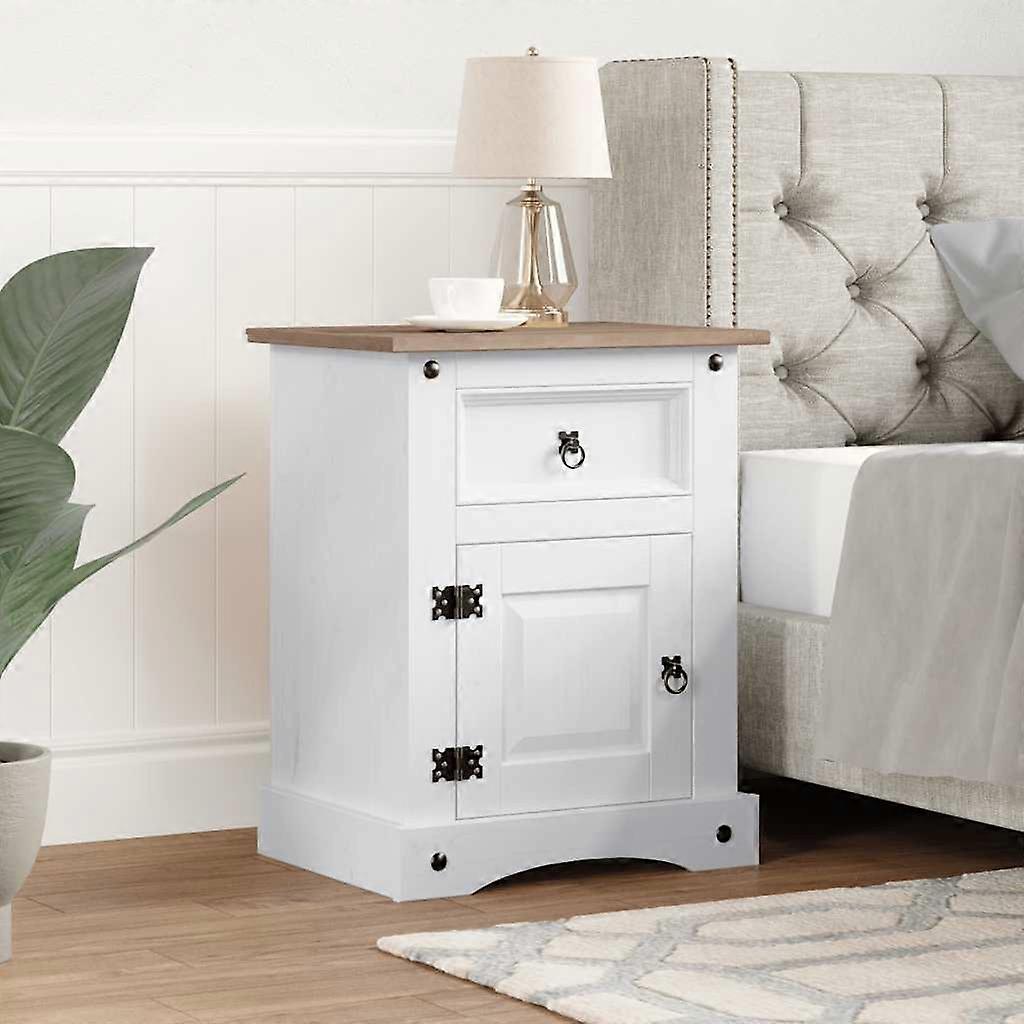 Nachttisch im Mexiko-Stil Corona Kiefernholz Weiß 53x39x67 cm