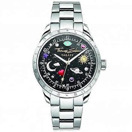Thomas Sabo Cosmic Black Dial Silver-Coloured Watch WA0402-201-203 Watch with a cosmic dial: the elaborate design of the black dial is the highlight of this unisex watch. It features facet-cut cosmic symbols of luck such as the moon, the stars, the sun, an eye and a heart. Some of the raised details are hand-painted with red, blue and purple cold enamel and some are set by hand with white zirconia stones. The "THOMAS SABO Galaxy†lettering also comes in a raised design. As a special highlight, the second hand is embellished with a little star. What's more, the hands are luminescent and glow in the dark. The LOVE - LUCK - DREAMS - ENERGY engraving on the bezel and the comfortable, individually length-adjustable stainless steel wrist strap round off the stylised, richly detailed design of the cosmos watch. Material stainless steel Case/bezel stainless steel, silver-coloured, Integrated pattern, Crown with synthetic stone Diameter approx. 34.00 mm (1.34 Inch) Housing Height approx. 9.00 mm (0.35 Inch) Colour silver-coloured, black, yellow gold-coloured Stones zirconia white Dial/hands Stones in setting, structured, black, yellow gold-coloured, silver-coloured, Moon and stars application, LumiNova hands Glass mineral glass sapphire coat. Bracelet stainless steel, silver-coloured, Stainless steel bracelet 3 link Bracelet width approx. 16.00 mm (0.63 Inch) Clasp Butterflyclasp Functions hour, minute, second Water resistance 5 ATM Movement MIYOTA GL34 Thomas Sabo Jewellery will come complete with matching packaging (*packaging images are for demonstration purposes - may vary from images shown)N.B. DUE TO OFFER PRICES OFFER ITEMS DO NOT COME WITH FULL PACKAGING - POUCHES ONLYPlease let us know if you need any further packaging in the notes section at checkout where our customer service team will be happy to help.Discover the world of Acotis Diamonds, where exceptional craftsmanship and timeless elegance come together to create jewellery designed to be treasured for a lifetime. Every piece in our collection is thoughtfully curated and masterfully finished, reflecting our commitment to quality, artistry, and enduring style. From radiant diamonds to lustrous precious metals and contemporary designer creations, Acotis Diamonds offers jewellery that celebrates individuality, sophistication, and the beauty of fine detail. Our range is crafted using only the finest materials, ensuring every item meets the highest standards of brilliance and durability. Whether it’s the sparkle of meticulously cut diamonds, the rich sheen of gold and sterling silver, or the vibrant hues of carefully selected gemstones, each piece is chosen to deliver exceptional clarity and lasting allure. We partner with leading jewellery designers and trusted global brands to bring you collections that blend modern aesthetics with classic inspirations, offering something to suit every personality and occasion.At Acotis Diamonds, we believe jewellery should be as meaningful as it is beautiful. That’s why we focus on craftsmanship that captures life’s most precious moments—whether it’s a gift to mark a milestone, a token of affection, or a personal investment in everyday luxury. Our designers pay close attention to every curve, facet, and setting, ensuring unmatched comfort, balance, and visual appeal. Each piece undergoes rigorous quality checks, so you can feel confident that your jewellery is made to endure, shine, and be cherished for years to come. From elegant bracelets and necklaces to statement earrings, refined rings, and collectible charms, our diverse range allows you to express your style with effortless sophistication. Whether you prefer understated minimalism, bold contemporary design, or timeless traditional beauty, Acotis Diamonds provides jewellery that enhances every moment with subtle glamour and refined detail. Experience the artistry of fine jewellery with Acotis Diamonds—where superior craftsmanship, exceptional quality, and thoughtful design come together to create pieces that truly shine.