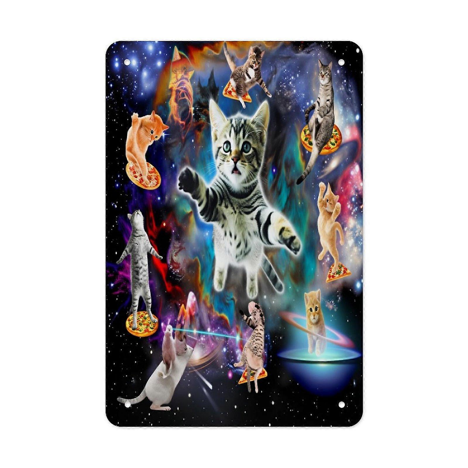 Cosmic Cat & Pizza Metal Tin Sign Wall Decor for Home Living Room Funny Art Poster Ornament