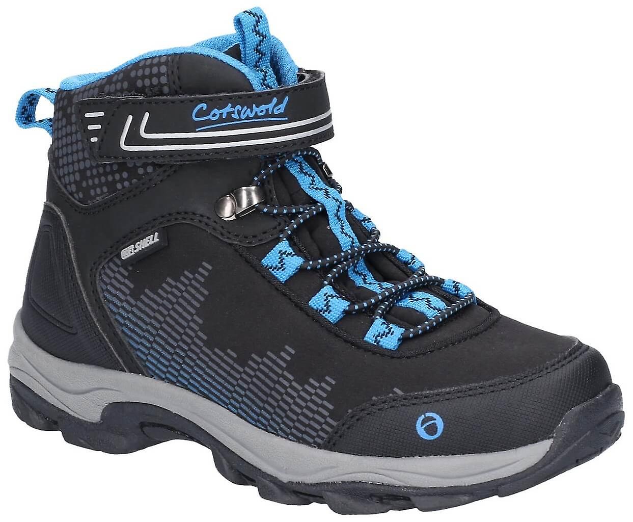 Introducing the Cotswold Ducklington Touch-Fastening Waterproof Hiking Boots, the ultimate junior children's hiking boot designed specifically for trail and hill walking adventures. These boots are engineered with a lightweight and breathable, water-resistant Softshell(TM) upper, ensuring your child's feet stay dry and comfortable throughout their outdoor activities. The internal waterproofing membrane is meticulously integrated to provide an additional layer of protection against wet conditions, while the moisture-wicking textile mesh lining keeps feet fresh and ventilated.For ease of use and a perfect fit, the Cotswold Ducklington boots come equipped with front and rear pull loops, easy pull-on bungee cord lacing, and an easy-off quick release touch-fasten strap. The gusseted flexible tongue with alignment loops further enhances the boot's fit and comfort. A removable lightly cushioned EVA foam footbed offers soft support for little feet, and the lightweight and flexible TR sole unit provides excellent traction and durability. With standard touch fastening, these boots are designed for convenience and reliability, making them an ideal choice for young explorers embarking on their outdoor adventures.Key Features and Benefits Junior children's hiking boot ideal for trail and hill walking Lightweight and breathable water-resistant Softshell(TM) upper Internal waterproofing membrane Moisture wicking textile mesh lining Gusseted flexible tongue with alignment loops Front and rear pull loops for correct fitting Easy pull-on bungee cord lacing Easy-off quick release touch-fasten strap Removable lightly cushioned EVA foam foot bed Lightweight and flexible TR sole unit Fitting: Standard Fastening: Touch Fastening Materials Upper Outer Material: Textile+Synthetic Lining Material: Waterproof Membrane Sole Material: TPR We deliver Cotswold Ducklington Touch-Fastening Waterproof Hiking Boots worldwide.We specialise in shipping almost anywhere in the world securely at competitive prices - across UK, US, Canada, Ireland, New Zealand, Europe - securely and fast at competitive prices