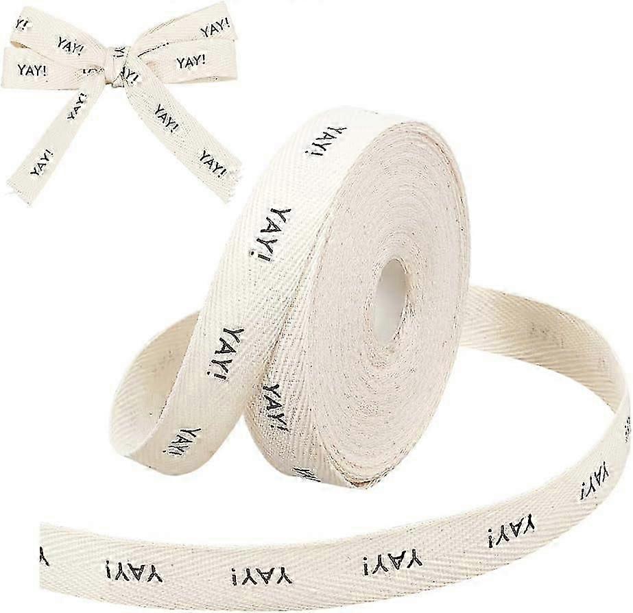 Cotton Herringbone Tape Ribbon 5/8 Inch9.84 Yards Yay Ribbon Word Print Ribbon for Gift Wrapping Bowknot Making Birthday Christmas Decoration Beige