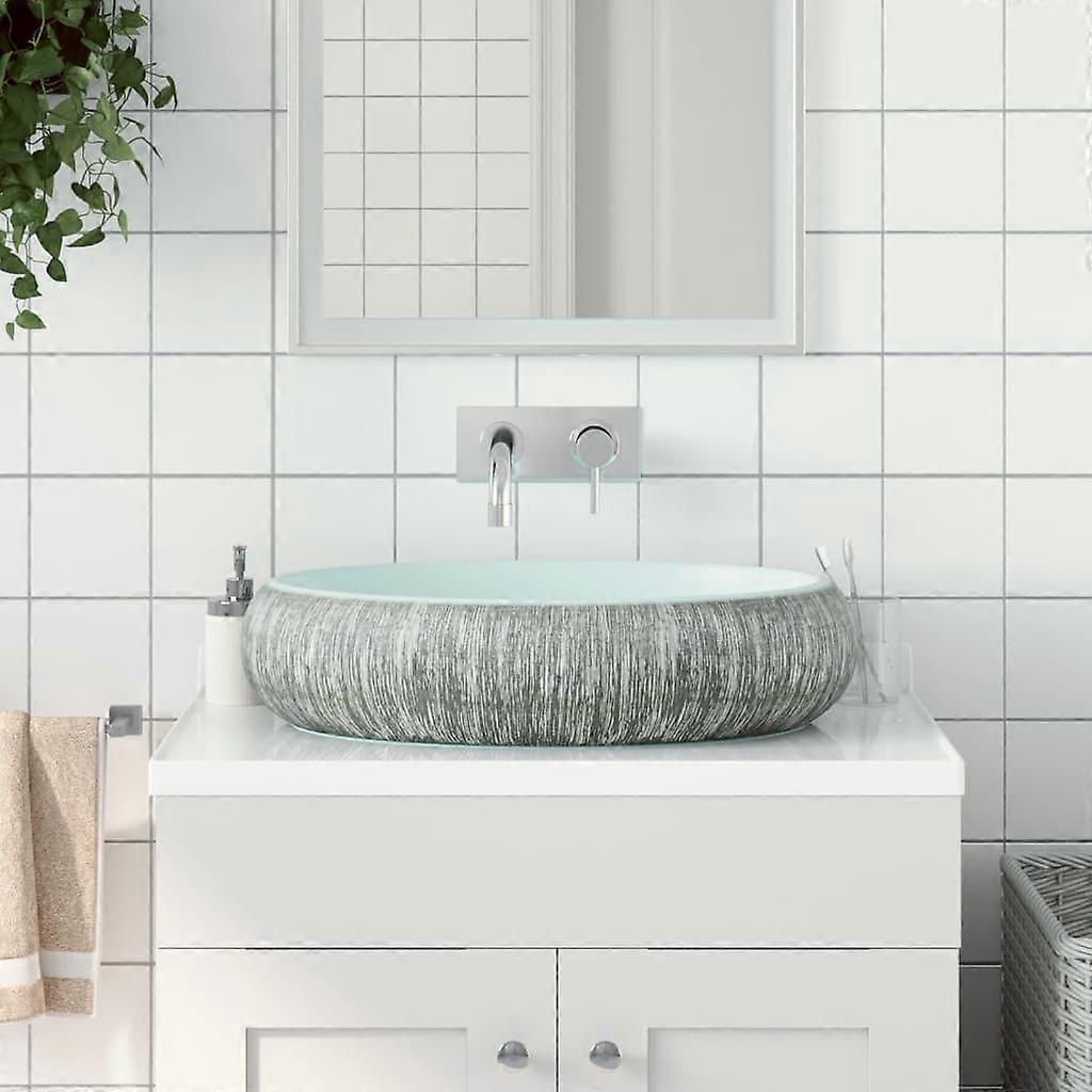 Aufsatzwaschbecken Grau und Blau Oval 59x40x15 cm Keramik