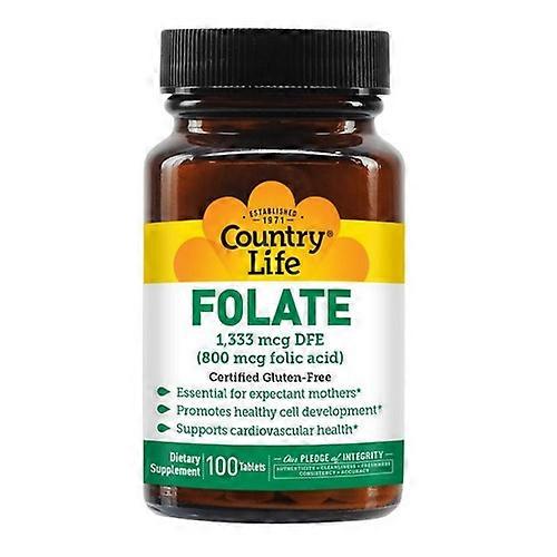 Country Life Folic Acid, 800 MCG, 100 Tabs (Pack of 1)