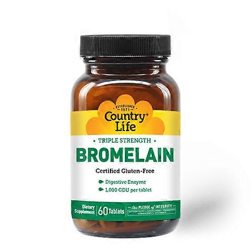 Country Life Triple Strength Bromelain, 1000 GDU, 60 Tabs (Pack of 1)