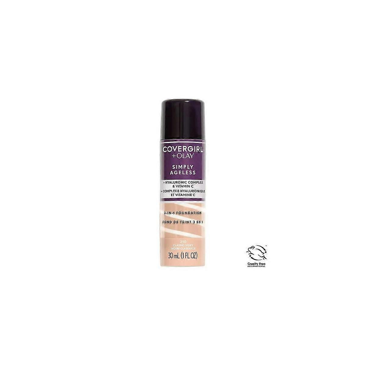 Covergirl + Olay Simply Ageless 3-in-1 Liquid Foundation With Hyaluronic Complex + Vitamin C, 210 Classic Ivory - 1 Fl Oz