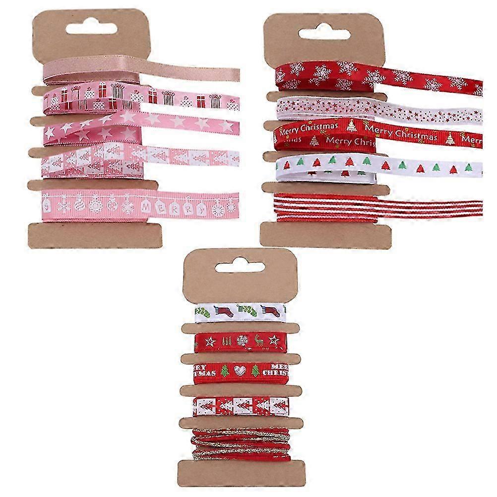 Craft Wrapping Ribbons Decorative Christmas Elements Assorted Color 1 Meter Long Per Ribbon Gift Wrapping Festive Atmosphere 3Pcs