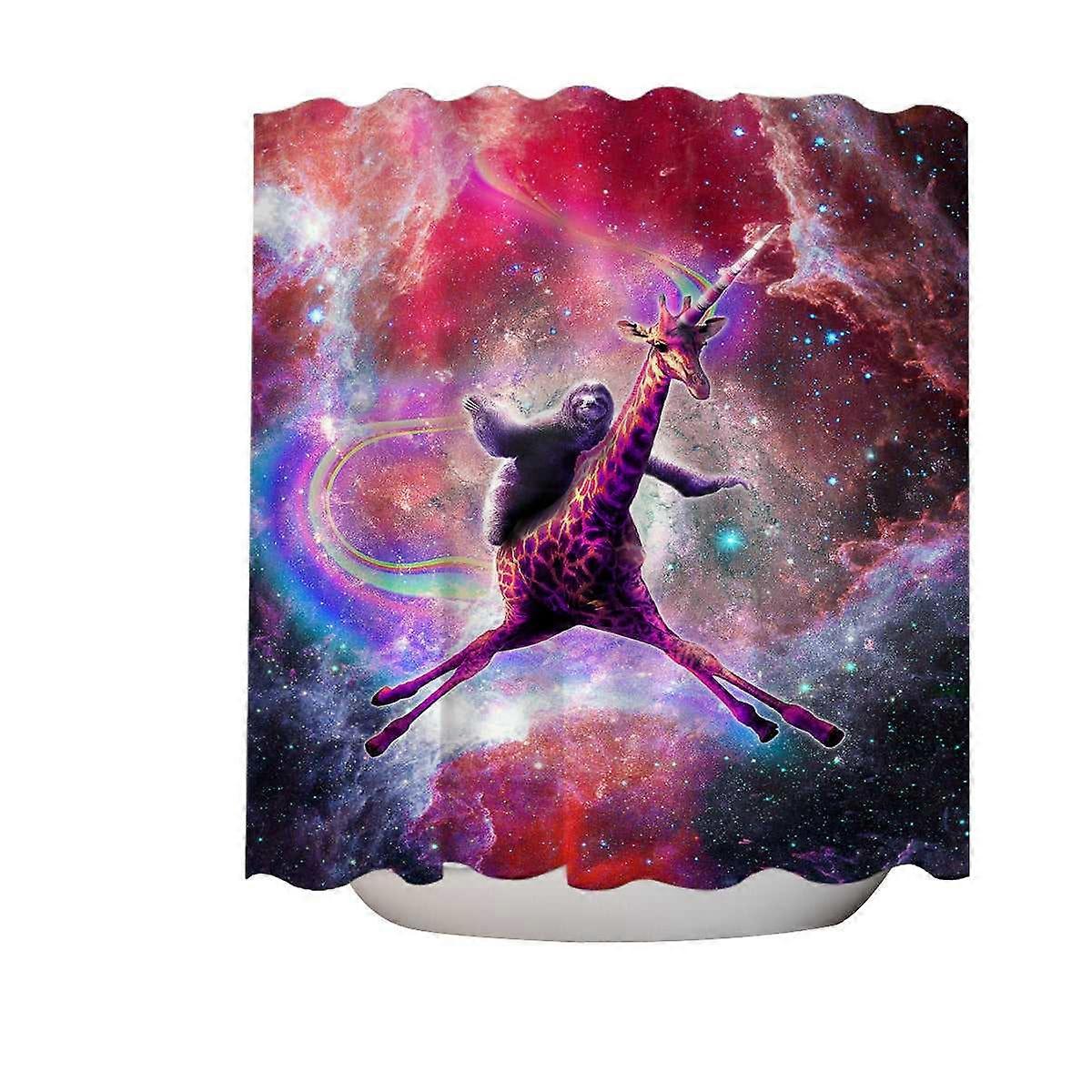 Crazy Funny Space Sloth Riding Giraffe Shower Curtain