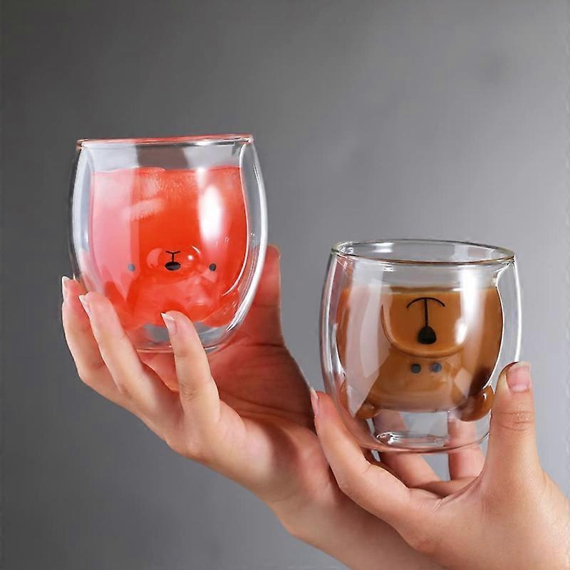 Creative Cute Teddy Bear Coffee Cup Double Glass Mug Cardboard INS Animal Milk Juice Cups 53CA