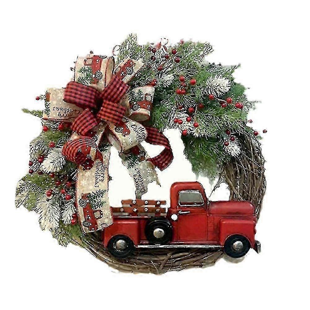 Creative Red Truck Christmas Wreaths Christmas Red Pinecone Fall Wreath Checkered Wreath Decoration Christmas Truck Holiday L3m8