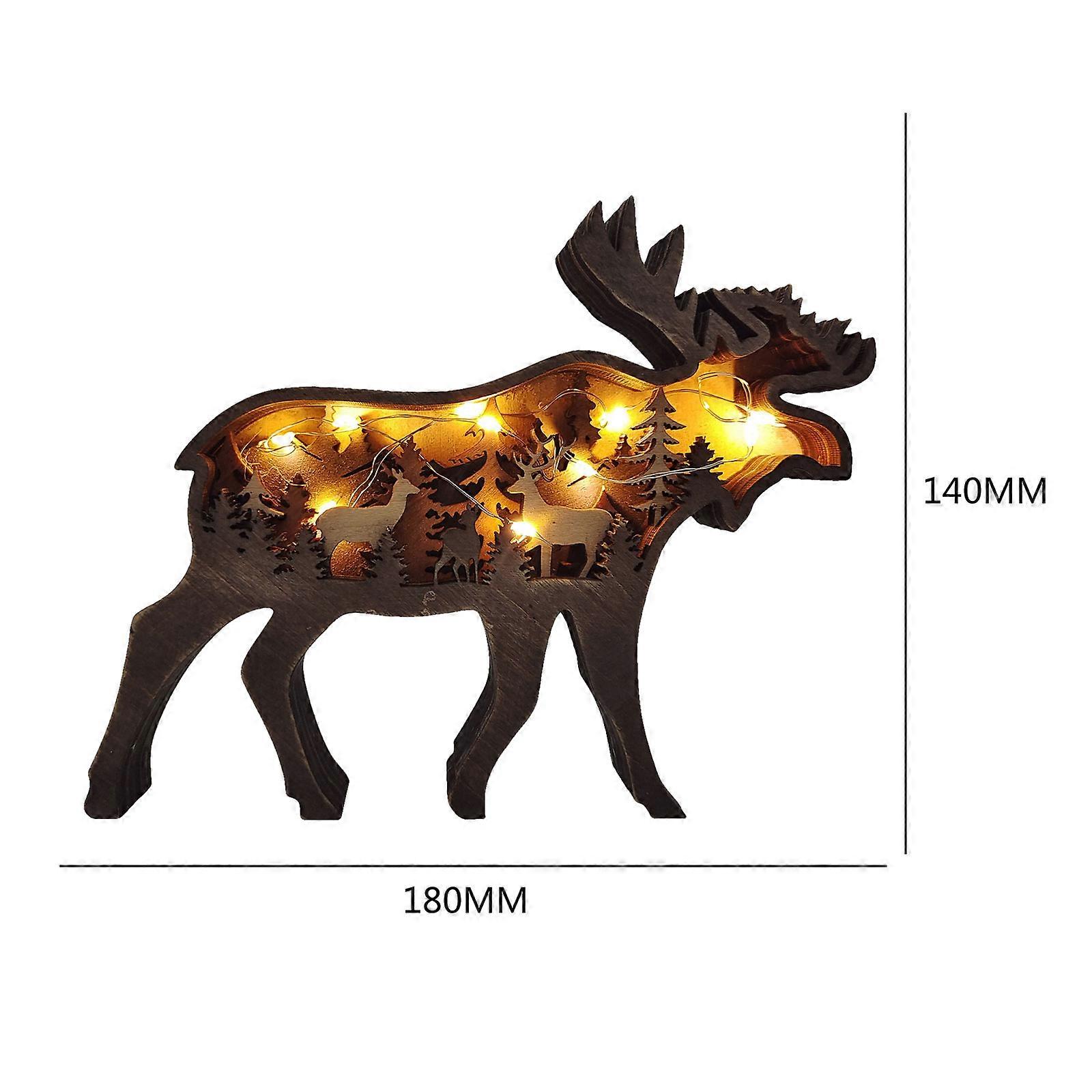 Creative Wooden Animal Totem with LED Light Bear Elk Carving Crafts Wooden Christmas Pet Decorations Totem Ornament