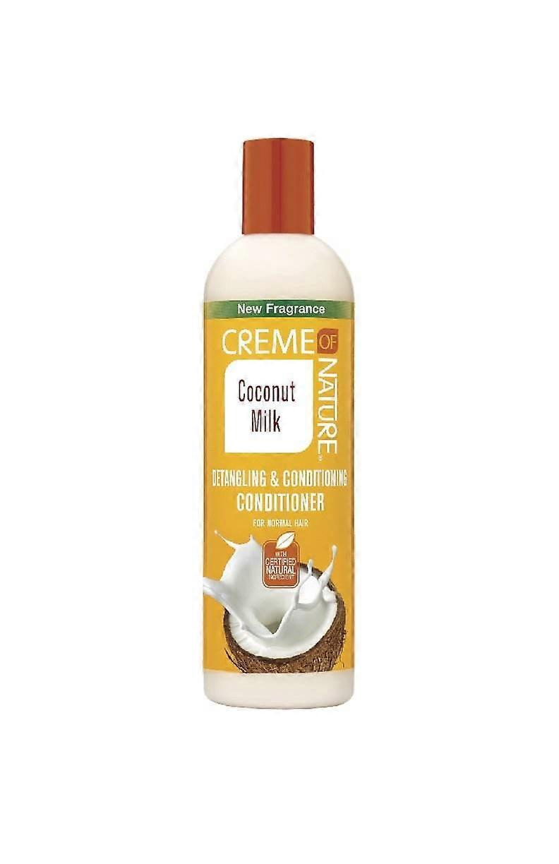 Creme of Nature Coconut Milk Detangling and Conditioning Conditioner is designed for normal hair. This creamy formula, infused with certified natural coconut oil, nourishes hair while detangling and adding shine. It improves manageability and leaves hair soft and smooth. Ingredients Certified natural coconut oil Coconut milk Suggested Use> After shampooing with Creme of Nature Coconut Milk Detangling & Conditioning shampoo, apply a generous amount to hair. Comb through for even distribution. Rinse thoroughly. Style as desired. For deeper conditioning: Apply conditioner to hair. Proceed with hair steaming or sit under hooded dryer with plastic cap for 5-10 minutes. Rinse thoroughly. Warning: Avoid contact with eyes. Keep out of reach of children.
